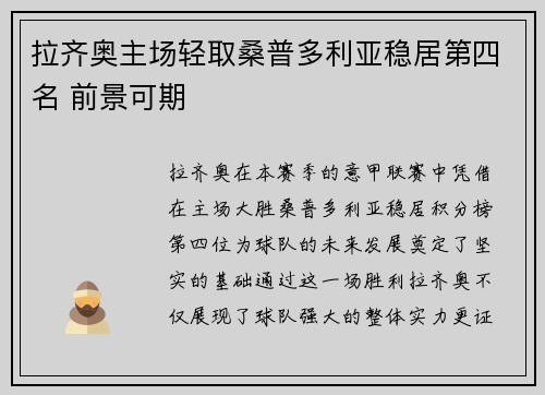 拉齐奥在本赛季的意甲联赛中,凭借在主场大...