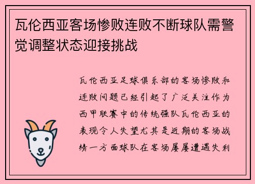 瓦伦西亚足球俱乐部的客场惨败和连败问题已...