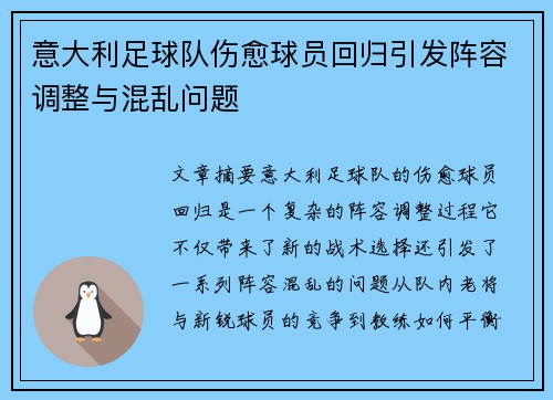 罗马球员伤愈复出助力球队重拾信心表现出色士气大振